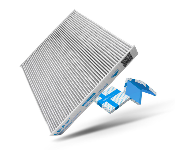 LIFAair(丽风)车用空调滤清器,采用专业HEPA滤材,针对过滤PM2.5设计,可以有效过滤进入车内的PM2.5等颗粒物,新装车滤芯的PM2.5去除率可达99%以上。